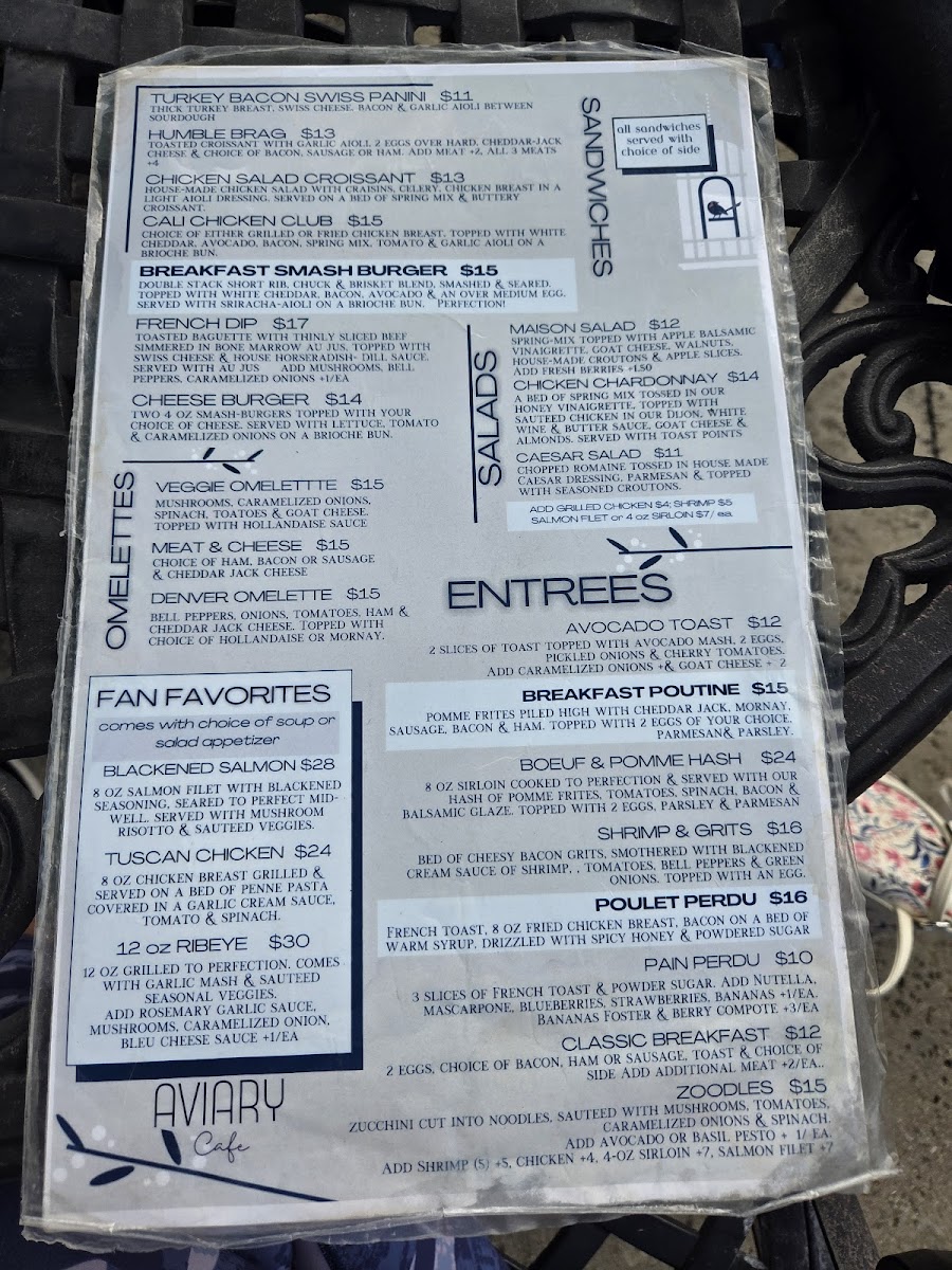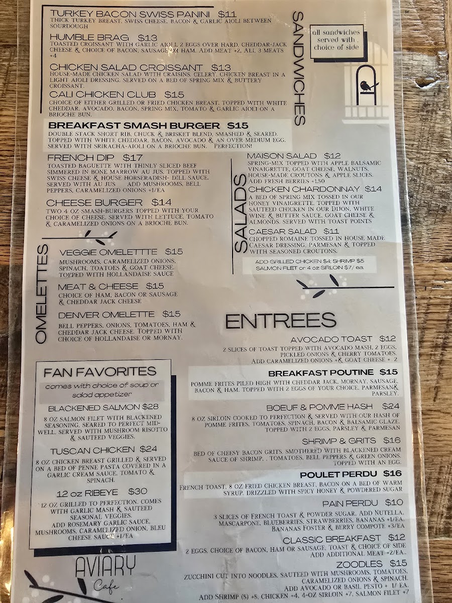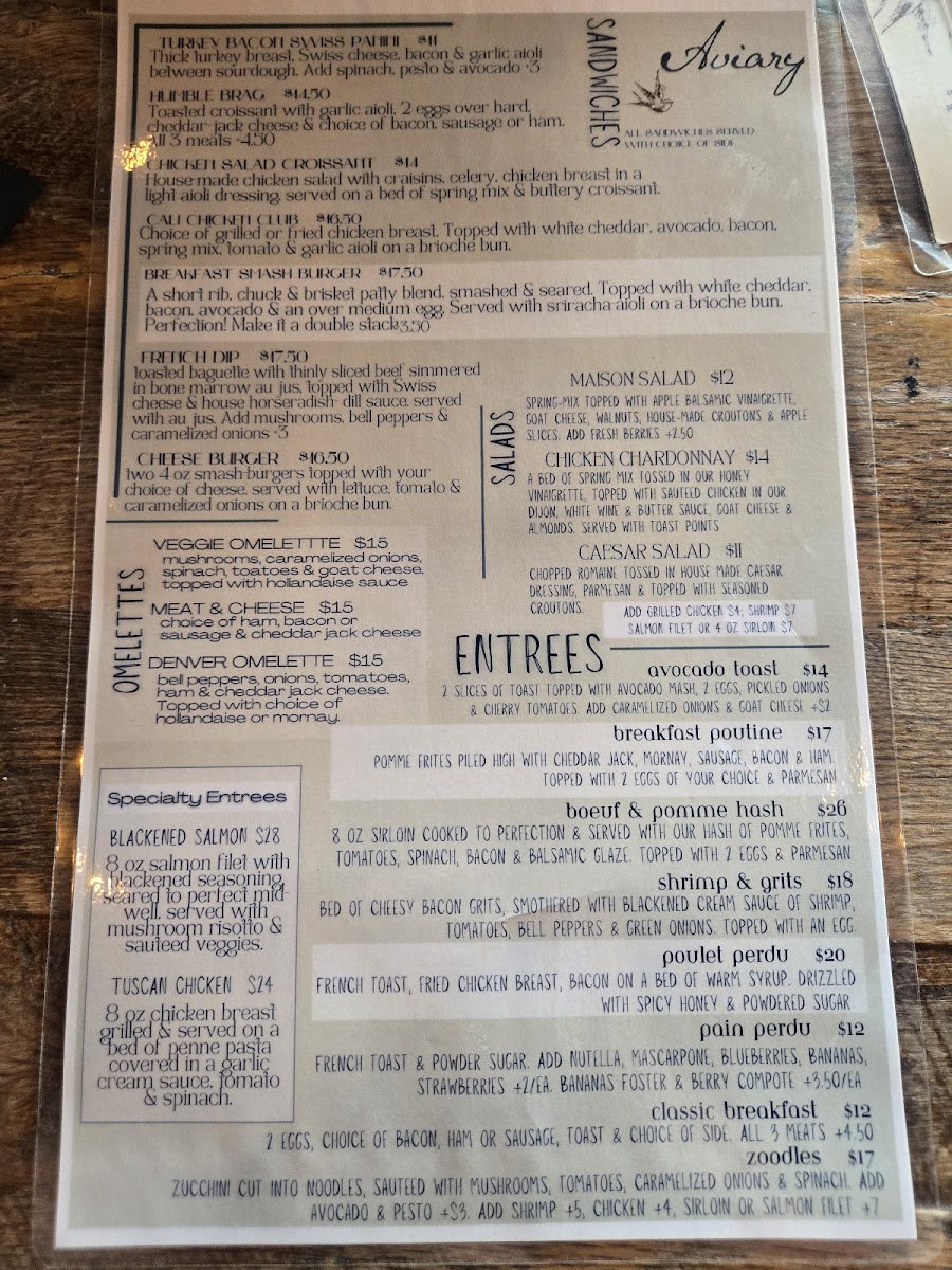 A toasted croissant with garlic aioli, 2 over-hard eggs, cheddar jack cheese & choice of either sausage patty, ham steak or bacon.